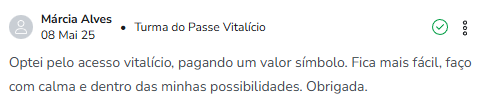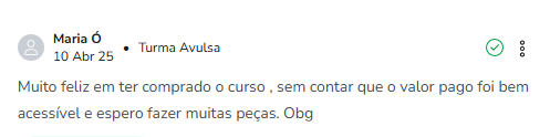 Ganhe acesso a todas as novas aulas e atualizações que rolarem no período ativo do seu curso. Para você se manter em destaque no mercado e impressionando suas clientes!